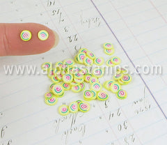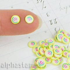 Thin slices of polymer clay canes. Perfect for decorating a miniature scene.