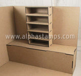 Cut from sturdy chipboard. This comes as a flat kit, but easy to put together with just a bit of glue.
