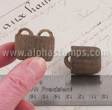 Antiqued cast resin. Nicely detailed to look like woven wicker.
